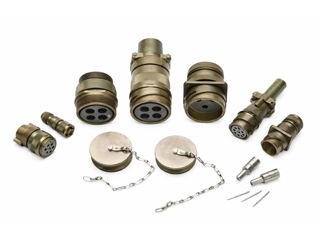 Circular Connector MIL-VG95234 Rev Bayonet Lock Square. Flange Panel Receptacle 4 Pole Male Solder 7,5A 700VAC/500VDC