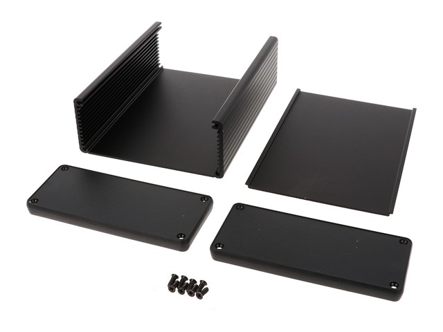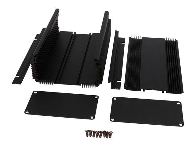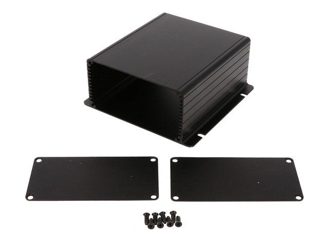 160x110x60,8mm Extruded Heat Dissipating Black Anodized Aluminium Enclosure with Metal End Plates