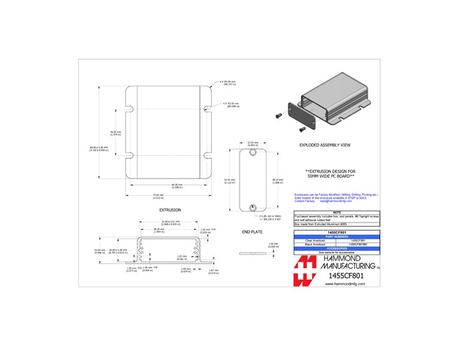 Aluminium Anodized 80x54x23mm Black Plastic End Panels Black