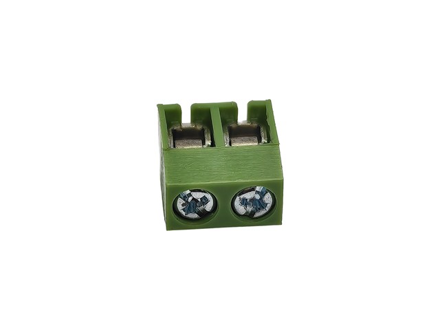 3.5mm Universal Screw Terminal Block • 2 way • 10A – 250V • Straight Pins • Green