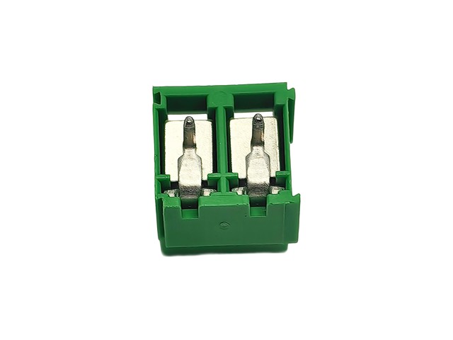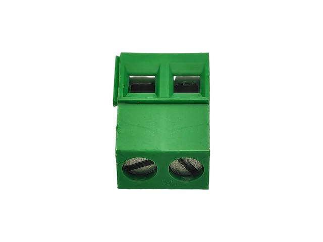 5mm Screw Clamp Terminal Block • 2 way • 10A - 250V • Straight Pins 45° •Green
