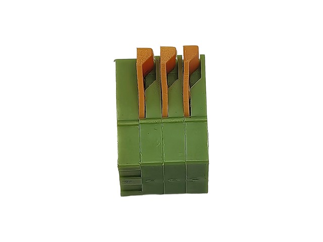 2.54mm Screwless Spring Terminal Block • 3 way • 2A – 150V • Straight Pins • Green