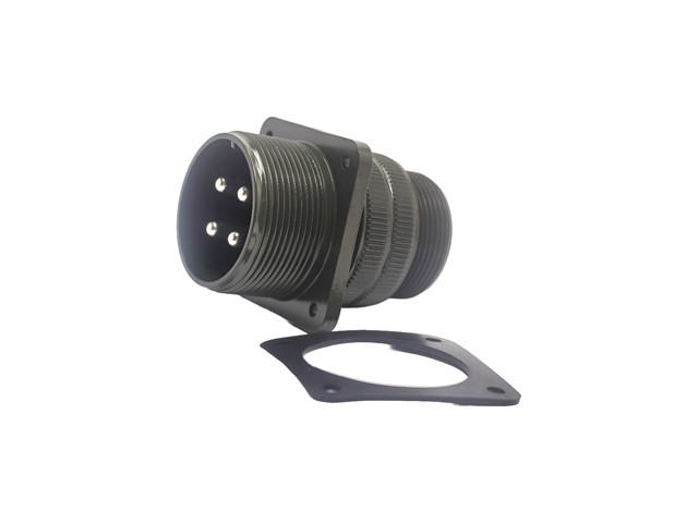 Circular Connector MIL-DTL-5015 Style Screw Lock Square Flange Panel Receptacle With Rear Thread 4 Poles #8 Contacts Male Solder 46A 900VAC/1250VDC (MS3100A22-22P)(97-3100A-22-22P)