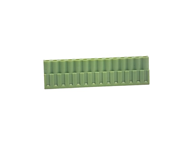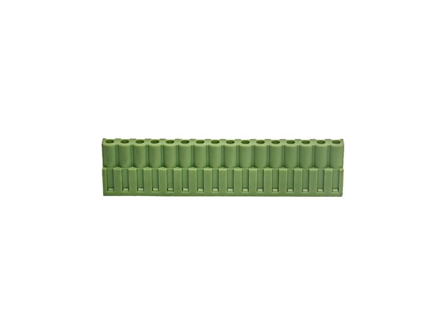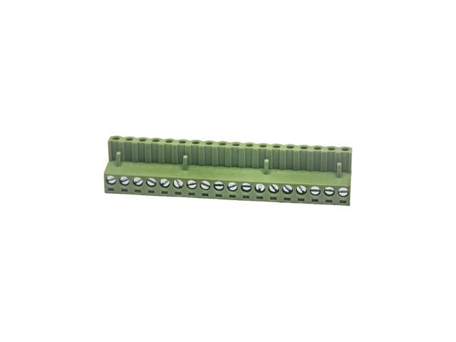 3.81mm Pluggable Terminal Block • 16 way • 8A – 125V • Screw Clamp • Green