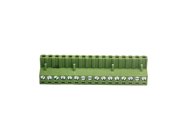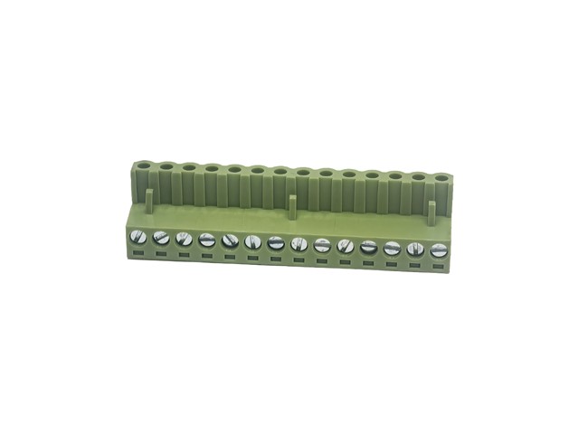 3.81mm Pluggable Terminal Block • 14 way • 8A – 125V • Screw Clamp • Green