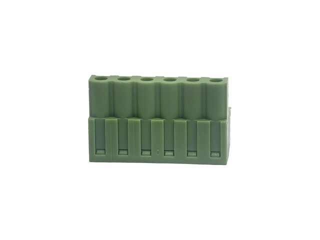 3.81mm Pluggable Terminal Block • 6 way • 8A – 125V • Screw Clamp • Green