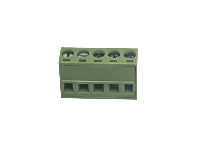3.81mm Pluggable Terminal Block • 5 way • 8A – 125V • Screw Clamp • Green