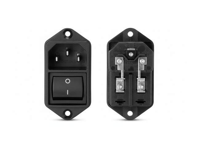 IEC C14M Inlet Snap-in with DPST Switch 1,5mm 15A 250V