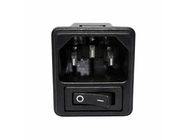 IEC C14M Inlet Snap-in with SPST Switch. 1mm (Panel Cut Out = 31.3 x 27.3)