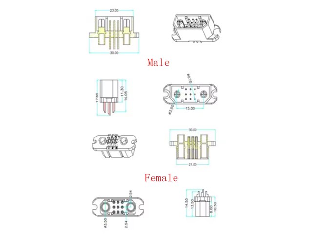 VTOL MPX Battery Connector Pair 2 Pole 30A Plus 9 Signal Contacts 5A Max Rating