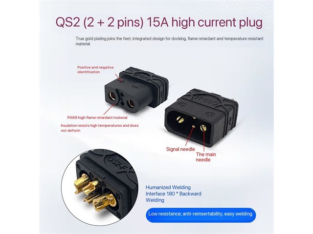 QS2 Anti Spark Battery Connector Pair 2Pole 30A Plus 2 Signal Contacts 5A Max Rating