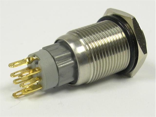 Vandal Resistant Push Button Switch 19mm Latching. Flat Button. 2c/o 5A-250VAC -IP67- Stainless Steel (Anti Vandal)