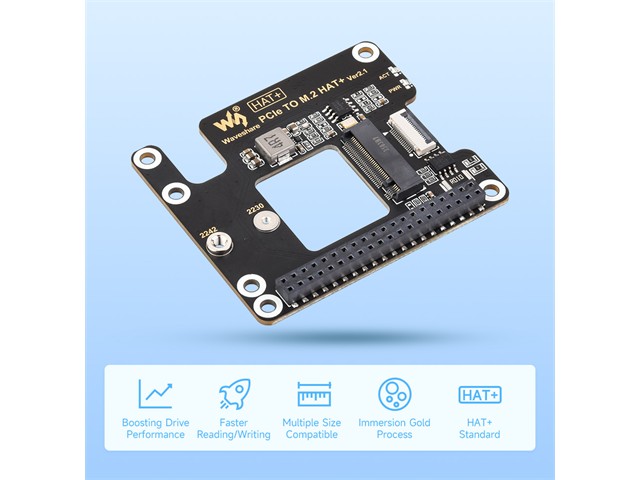 PCIE to M.2 adapter for Raspberry PI 5, Supports NVME Protocol M.2 Solid State Drive, High-Speed Reading/Writing, HAT+ Standard [WVS PCIE TO M.2 ADAPT-RASPB PI 5]