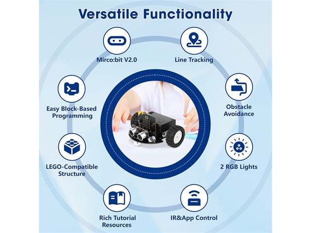 Comes Fully Equipped with a Range of Built-In Features, Including a Potentiometer, LDR, Buzzer, Push Buttons, Dual Motor Drivers, Four LEDS, AN RGB LED, and Two IR Sensors. A Unique Advantage to Learn Application Areas such as Robotics & Programming