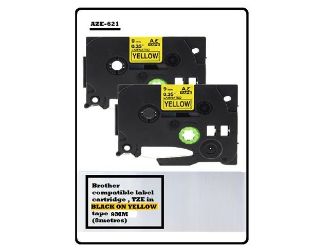 Brother Compatible Label Cartridge, TZE in Black on Yellow Tape 9mm (8metres), AZE-621 = BRH TZE 621
