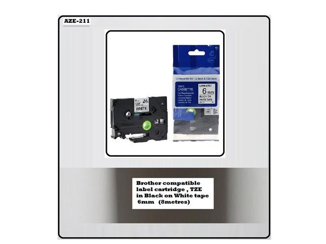 Brother Compatible Label Cartridge, TZE in Black on White Tape 6mm (8 Metres), AZE-211 =BRH TZE 211