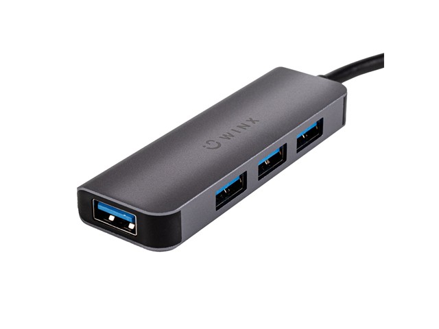 WINX Connect Simple USB/Type-C HUB, Ports:4xUSB3.0 (Up to 5Gbps), OS Compatibility: Windows, Linux, MacOS, iOS & Android, Operating Temp:-30°C~60°C, Cable Length:20cm, Aluminium Alloy & ABS, Host Interface:Type-C USB