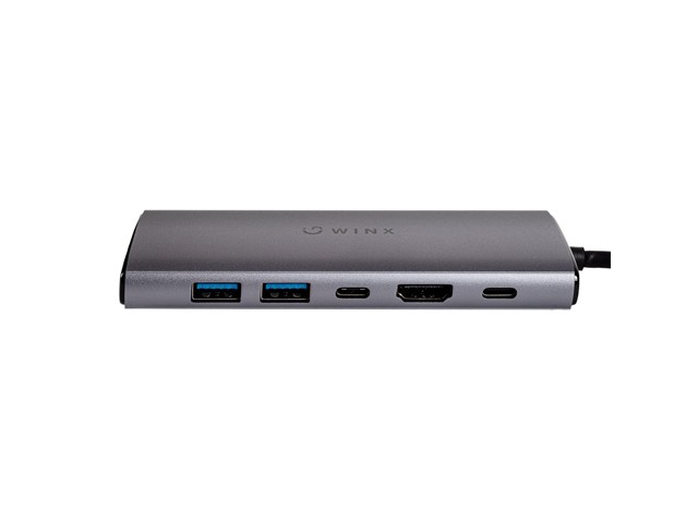 WINX CONNECT Max 11-in-1 Type-C HUB, 1xHDMI:4K@30Hz (3840x2160), 1xVGA:1080@60Hz, 1xType-C 100W Power Delivery (20V/5A), 3xUSB3.0(Up to 5Gbps), 1xUSB2.0(Up to 480Mbps), 1xRJ45 Gigabit Ethernet, 1x3.5mm AUX Stereo, 1xSD & Micro Card Reader