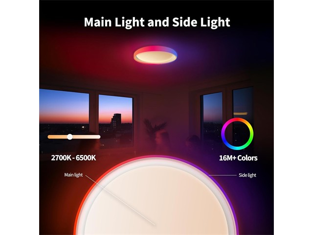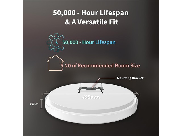 Aqara LED Ceiling Light, Wireless Protocols:Zigbee, Colour Temperature:2700K~6500K, Operating Temp:-10°C~40°C, Zigbee Operation Freq:2405-2480MHz, RGBIC Status Light Ring , 100~240V 50/60 Hz, Max0.4A 40W, 495×75mm