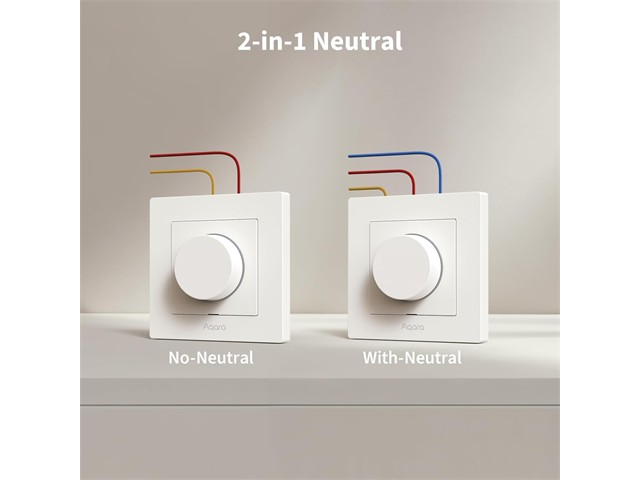 Aqara Dimmer Switch H2 EU White, 2-in1 Neutral, Compatible with Apple Home, Alexa, Google Home & Matter, Thread/Zigbee Protocol, Rated Load:Incandescent/Halogen 300W, Dimmable LED/CFL 200W, 220~240Vac 50/60hz, 86x86x55x45mm