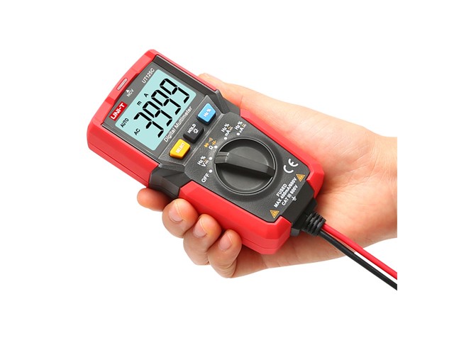 Pocket Size Digital Multimeter 600V AC/DC 400MA AC/DC , Resistance(W):40,MW , Capacitance(F):100μf , Frequency(HZ):10hz~60KHZ , Duty Cycle:20%~80% , NCV , Diode/continuity Test , Low Batt Indication , Data Hold/auto Pwr Off , Cat III 600V , 180G [UNI-T UT125C]