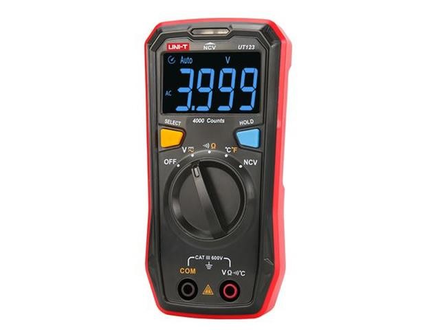 Digital Multimeter 600V AC/DC Auto Range, NCV, Data Hold, LED/Puzzer, Display Count:4000, Temp:–40℃~ 300℃, RES:20MΩ, Auto Power Off, Continuity Test, CAT III 600V