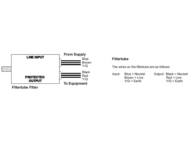 Clearline Filtertube Filter 10A To Be Used On Gate Motors-230V AC 50Hz (Wire Leads )