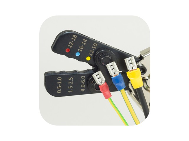 608-400 :: Compact 6 1/2" 4 Way Indent Crimping Tool (162mm) with Cushioned grips, Built-in locator and a Full cycle ratchet