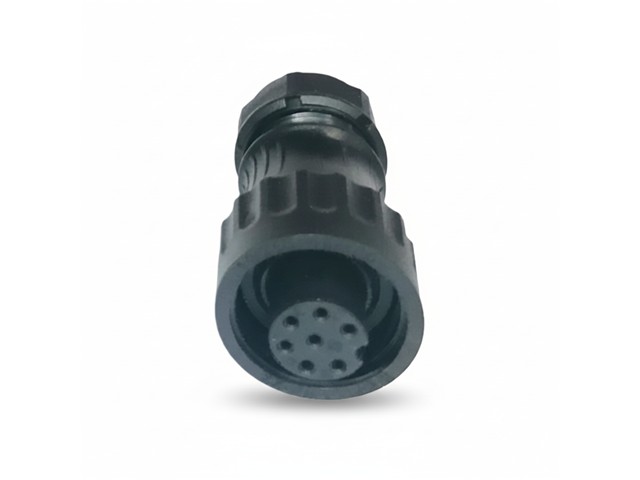 Circular Connector - RD24 Style Econo 7 Pole (6P+Earth) Cable End Female Straight Strain Relief Solder Term. Cable OD 7-12mm. 10A/250VAC. IP67