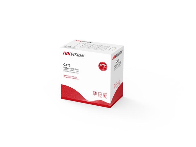 Hikvision Network Cable CAT6 UTP Solid Copper Grey 305m, Conductor:0.55mm, Fire Resistant:No, Sheath Material:PVC, Insulation: HDPE & Diameter:0.98±0.05mm, Drain Wire: No, Quality Verified By Fluke Test