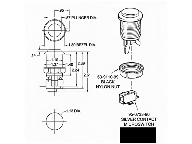 28mm American Style Arcade Machine Push Button with Micro Switch Yellow. Generic Happ-Style Arcade Push Button