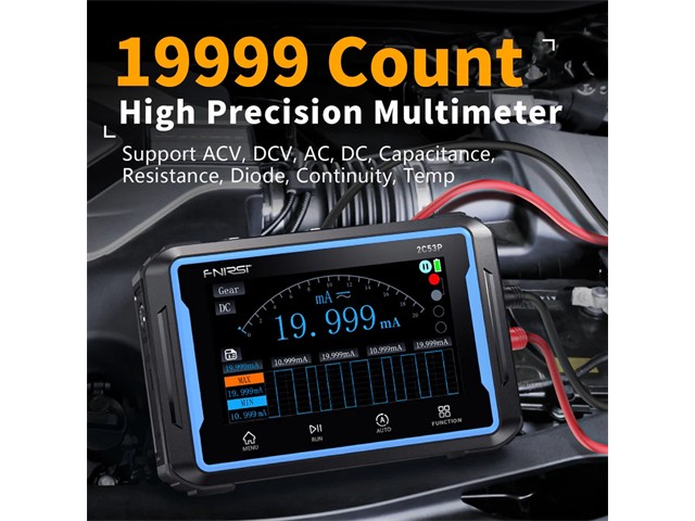 Automotive Digital Multimeter True RMS, 1000V AC/DC 10A AC/DC (20A for 10s Max), RES(Ω):60MΩ, CAP(F):100mF, FREQ:10Hz~10MHz, Temp(°C):-40°C~1000°C, TEMP(°F):-40°F~1832°F, VFC:1000V, RPM:2STR/4STR, Pulse Width:999.9mS, Display Count:6000