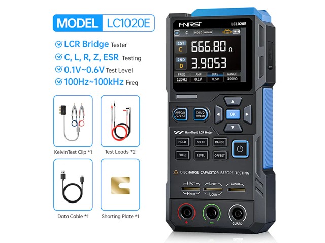 Inductance Capacitance Meter Res:20MΩ,CAP:600uF, Inductance:2mH/20mH/200mH/2H/20H, Display Count 1999, Manual Range, Diode, Transistor, Buzzer, Low Batt Indication