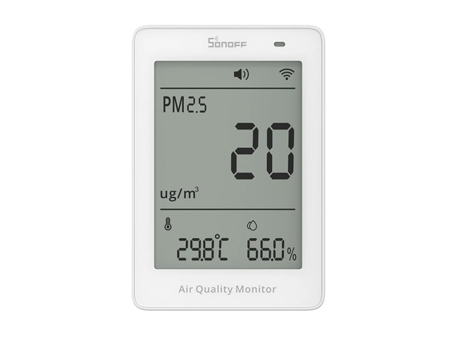 A Matter-Over-Wi-Fi Air Monitor Tracking PM2.5, PM10, Temp, and Humidity. It Features a Real-Time LCD, APP Alerts, and 1-Year Data History for Smart Home Automation.